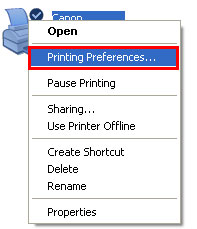 2. 右鍵按一下印表機圖示,然後選擇「列印喜好設定」。