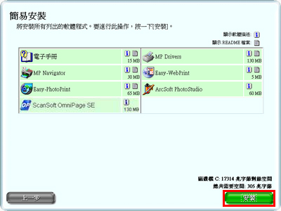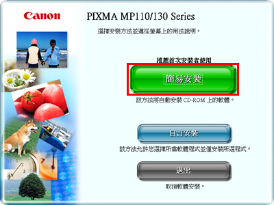 安裝軟體有兩種方法:「簡易安裝」或「自訂安裝」。