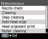 5-1. 使用上/下游標按鈕選擇「滾軸清潔」,然後按「OK」按鈕。