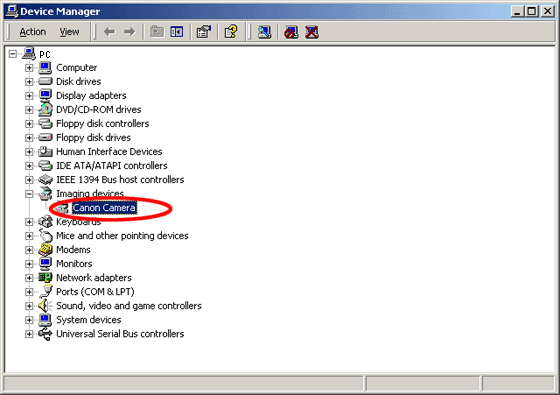 如果在[其他裝置(Other Devices)]或[影像裝置(Imaging Devices)]目錄中出現或多次出現您的相機型號名稱或[佳能相機(Canon Camera)],請將其全部刪除。