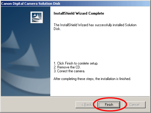 第二步至此結束。第二步完成了從「佳能數碼相機解決方案光碟」安裝軟件。