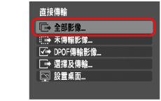 5. 相機的液晶螢幕上出現下面的選單後,請選擇[全部影像]以下載記憶卡中記錄的所有影像。