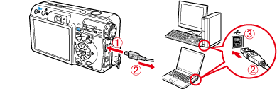 1. 使用相機隨附的介面連接線連接相機的 DIGITAL 端子至電腦的 USB 連接埠。