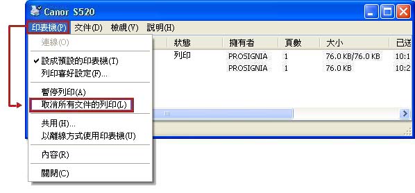 印表機操作完全停止後,請嘗試按一下「取消所有文件」。
