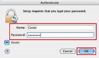 5. 顯示下面視窗時輸入管理員姓名和密碼,並按一下〔確定(OK)〕