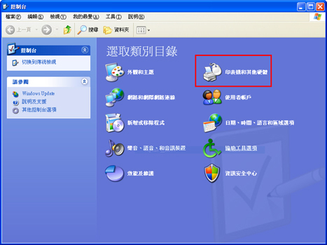 2. 顯示「控制台」視窗時,按一下「印表機和其他硬體」。