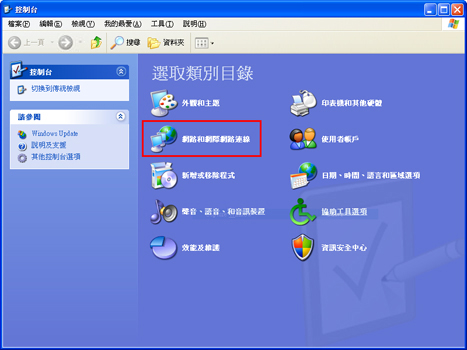 2. 顯示「控制台」視窗時,按一下「網路和網際網路連線」。
