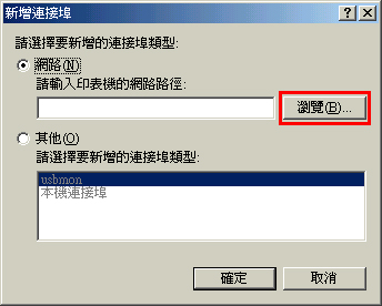 4. 顯示「新增連接埠」視窗時,按一下[瀏覽]。
