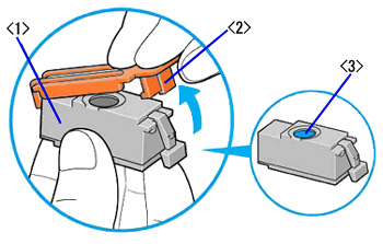 <1> 墨水盒標記與列印頭鎖定桿標記
