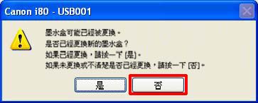 注意:墨水盒安裝到印表機中後,可能出現以下訊息。在訊息上按一下「否」。