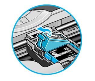 2. 按照箭頭方向按黑色墨水盒的卡子。
