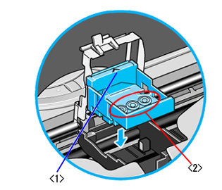 <1> 墨水盒標記與列印頭鎖定桿標記