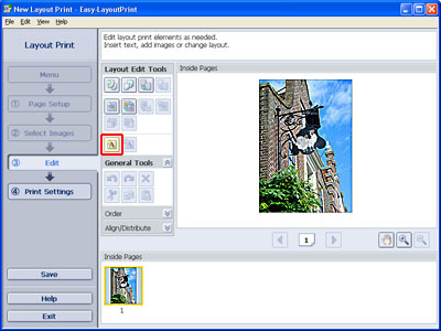 按一下「佈置編輯工具(Layout Edit Tools)」里的[添加文本(Add Text)]按鈕。