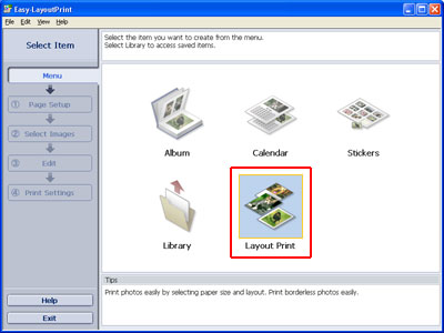 從「功能表(Menu)」中選擇「佈置列印(Layout Print)」。