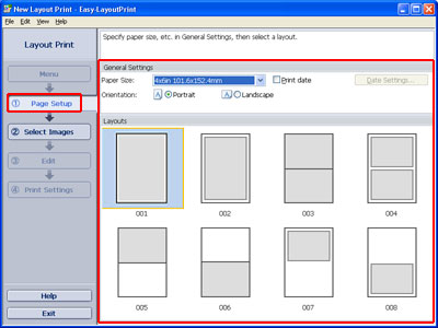 在「一般設定(General Setting)」裡指定「紙張大小(Paper Size)」、「方向(Orientation)」和「列印日期(Print Date)」,然後選擇「佈置(Layout)」。
