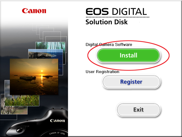 2. 將 EOS 數碼解決方案光碟 (EOS DIGITAL Solution Disk) 放入電腦的光碟機中。