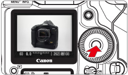 8. 請確保選單顯示消失,然後按<SET>按鈕。即時顯示影像會以約 100% 的檢視範圍顯示在液晶螢幕上。