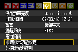 >設定頁。下一步,轉動<速控轉盤>選擇[即時顯示功能設定],然後按<SET>按鈕。