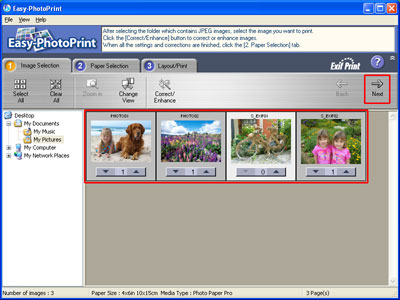 1. 在「1. 影像選擇(Image Selection)」標籤上,選擇要列印的影像,並按一下[下一步(Next)]。