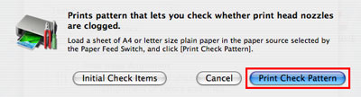 在「送紙轉換(Paper Feed Switch)」選定的紙張來源中載入 A4 或 letter 大小的紙張後,按一下[列印檢查圖案(Print Check Pattern)]。