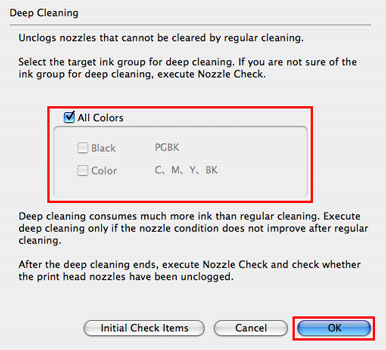 - 執行所有顏色墨水的「深度清潔(Deep Cleaning)」時,選擇「所有顏色(All Colors)」。