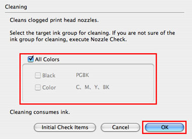 - 執行所有顏色的「清潔(Cleaning)」時,選擇「所有顏色(All Colors)」。