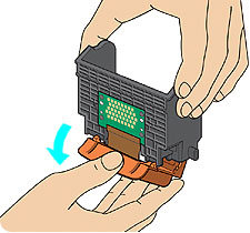 4. 從包裝中取出列印頭,然後取下橙色保護蓋。