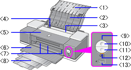 - 電源指示燈熄滅︰ 印表機關閉。