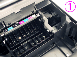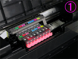 3. 按每個墨水盒的卡子取下墨水盒。