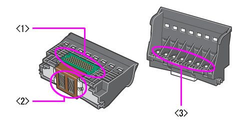 請勿觸摸列印頭觸點 <1>、金屬部分 <2> 或墨水連接埠 <3>。