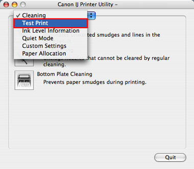 1. 在彈出的「IJ 印表機工具程式(IJ Printer Utility)」功能表中,選擇「清潔(Cleaning)」。