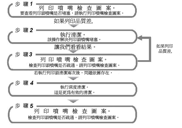 要檢查並改善列印頭噴嘴堵塞的狀況,請按照以下步驟進行操作。