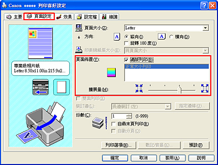 3. 按一下「頁面設定」標籤,然後勾選「滿版列印」。
