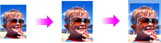 滿版列印時,影像被稍稍擴大。因此,影像的邊緣由於略大於紙張而不被列印。