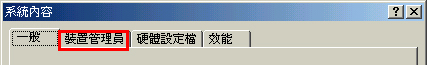 2. 選擇「系統內容」視窗中的「裝置管理員」選項頁。