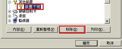 4. 顯示帶有感歎號(!)或問號(?)的「未知設備」或「其他設備」時,表示不能識別設備。