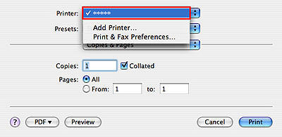4. 在「印表機(Printer)」快顯功能表中,選取使用的印表機型號。