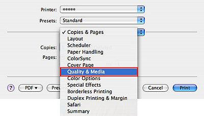 5. 在第三個快顯功能表中,選取「品質和媒體(Quality & Media)」。