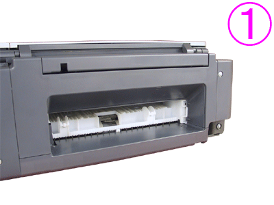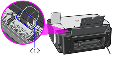 如果故障仍然存在,用濕棉花籤或類似物品清潔後端托盤內右側的送紙滾軸< 1 >。清潔時手動轉動滾軸< 1 >。