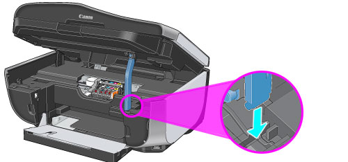 4. 當取出列印頭時,請首先提起列印頭鎖定桿。