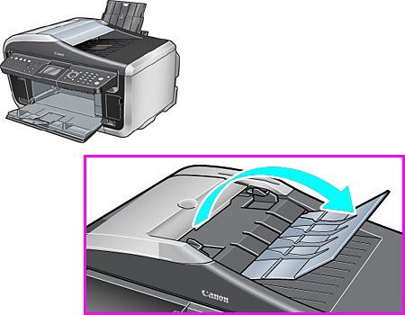 b-2. 打開文件托盤,影印面朝上將文件裝入 ADF。