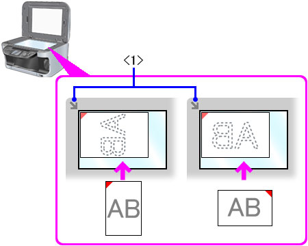 - 將文件與原稿玻璃左上角的對準標記<1>(以箭頭表示)對齊。