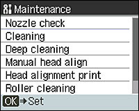 4. 使用左/右箭頭按鈕選擇「維護(Maintenance)」,然後按下[確定(OK)]按鈕。