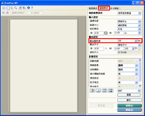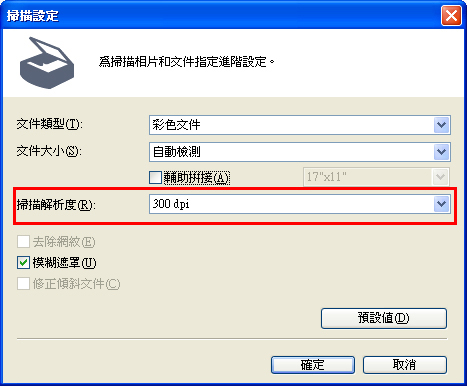 掃描解析度越高,掃描的影像越精細,但是文件大小越大。