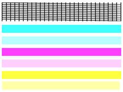 如果即使在完成「深度清潔(Deep Cleaning)」以後,在「噴嘴檢查圖案(Nozzle Check Pattern)」列印上仍有線條缺失現象出現,則墨水盒可能有缺陷。