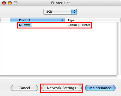 8. 在「印表機列表(Printer List)」中選擇正在使用的印表機名稱,然後按一下「網路設定(Network Settings)」。