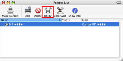 6. 在「印表機列表(Printer List)」中選擇正在使用的印表機名稱,然後在工具欄中按一下「工具程式(Utility)」。