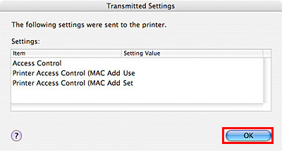 - 要停用 MAC 位址篩選,則不要選取「啟用印表機存取控制(MAC 位址)(Enable printer access control (MAC Address))」。