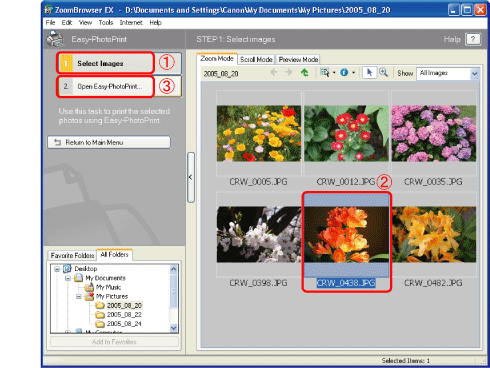 如果桌面上沒有顯示[ZoomBrowser EX]圖示,請按一下[開始(Start)] > [所有程式(All Programs)](或[程式(Program)]) > [Canon Utilities] > [ZoomBrowser EX]並選擇[ZoomBrowser EX]以啟動該程式。