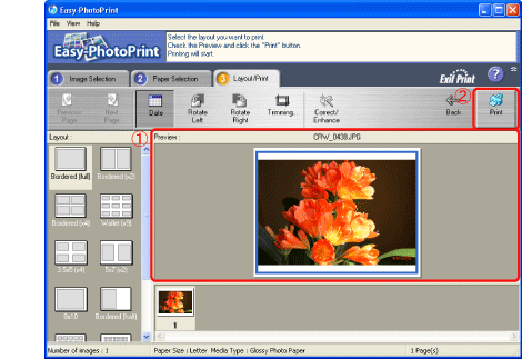 9. 返回「編排/打印(Layout/Print)」設定頁。查看預覽後打印影像。
